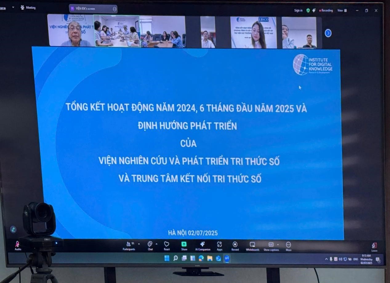 Tại Hội nghị, Viện trưởng Viện IDK TS. Nguyễn Huy Chương đã báo cáo tổng kết các hoạt động nổi bật trong năm 2024, 6 tháng đầu năm 2025 với trọng tâm là phát triển Trung tâm kết nối tri thức số, kết nối thành công 120 đơn vị trên cả nước, đã chỉ mục thành công 1.315.560 biểu ghi (cả số và truyền thống). Bên cạnh việc đánh giá kết quả đã đạt được, Viện IDK cũng công bố định hướng phát triển trong thời gian tới với mục tiêu mở rộng mạng lưới với mục tiêu 150 thành viên vào cuối năm 2025, triển khai mô hình chia sẻ dữ liệu toàn văn nội sinh và chia sẻ, dùng chung dịch vụ cho các câu lạc bộ thuộc Hiệp hội, kết nối với các nguồn tài nguyên giáo dục mở tại Việt Nam và trên thế giới, đồng thời đẩy mạnh chuyển đổi số trong lĩnh vực thư viện.